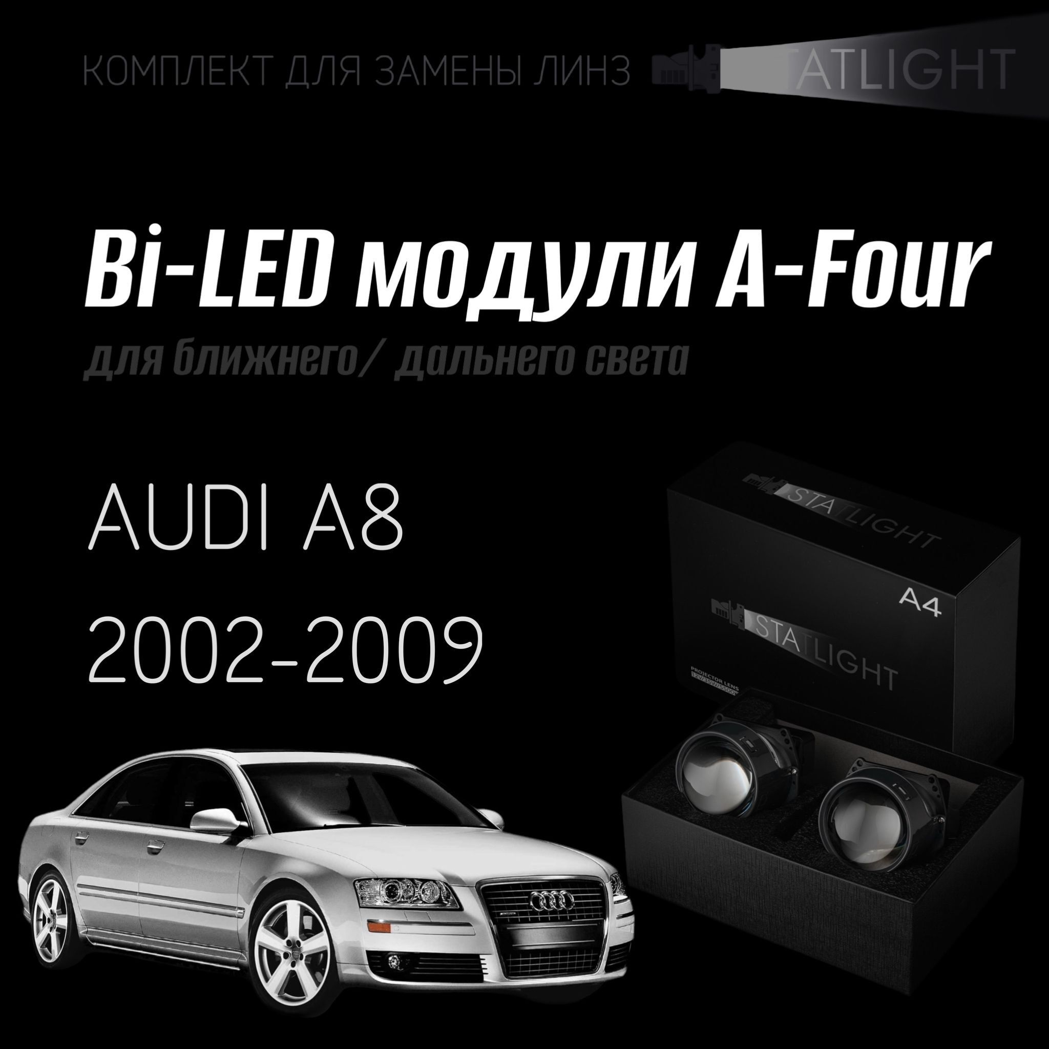 Bi led линзы 3.0 для фар Audi A8 (D3) 2002-2009, би лед линзы Statlight A-Four, комплект 2 шт