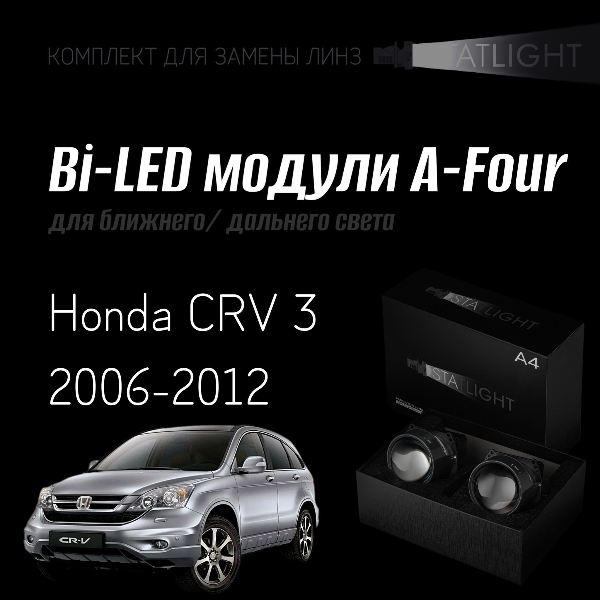 Bi led линзы 3.0 для фар Honda CRV 3 2006-2012, би лед линзы Statlight A-Four, комплект 2 шт