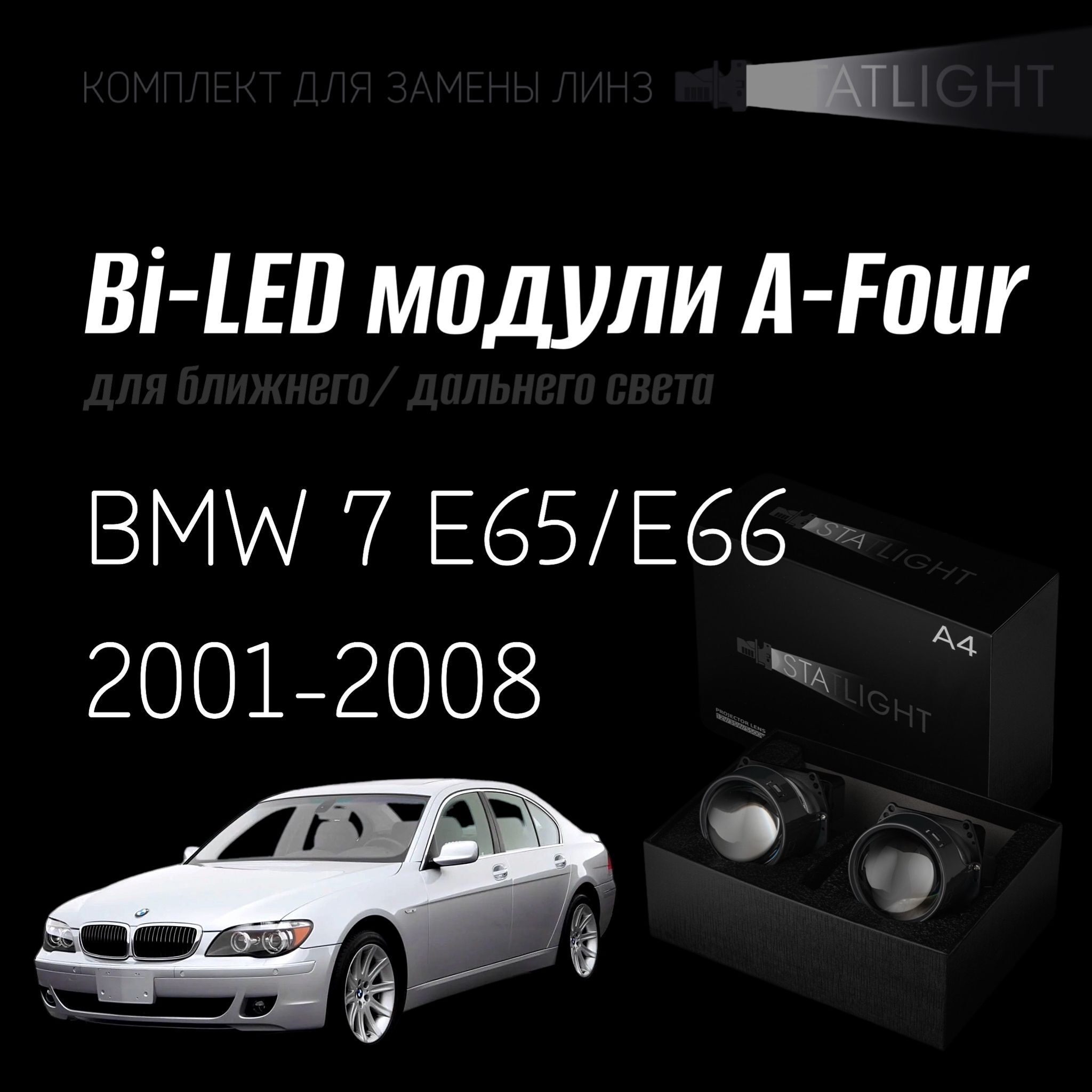 Bi led линзы 3.0 для фар на BMW 7 E65,E66 2001-2008 AFS , би лед линзы Statlight A-Four, комплект 2 шт