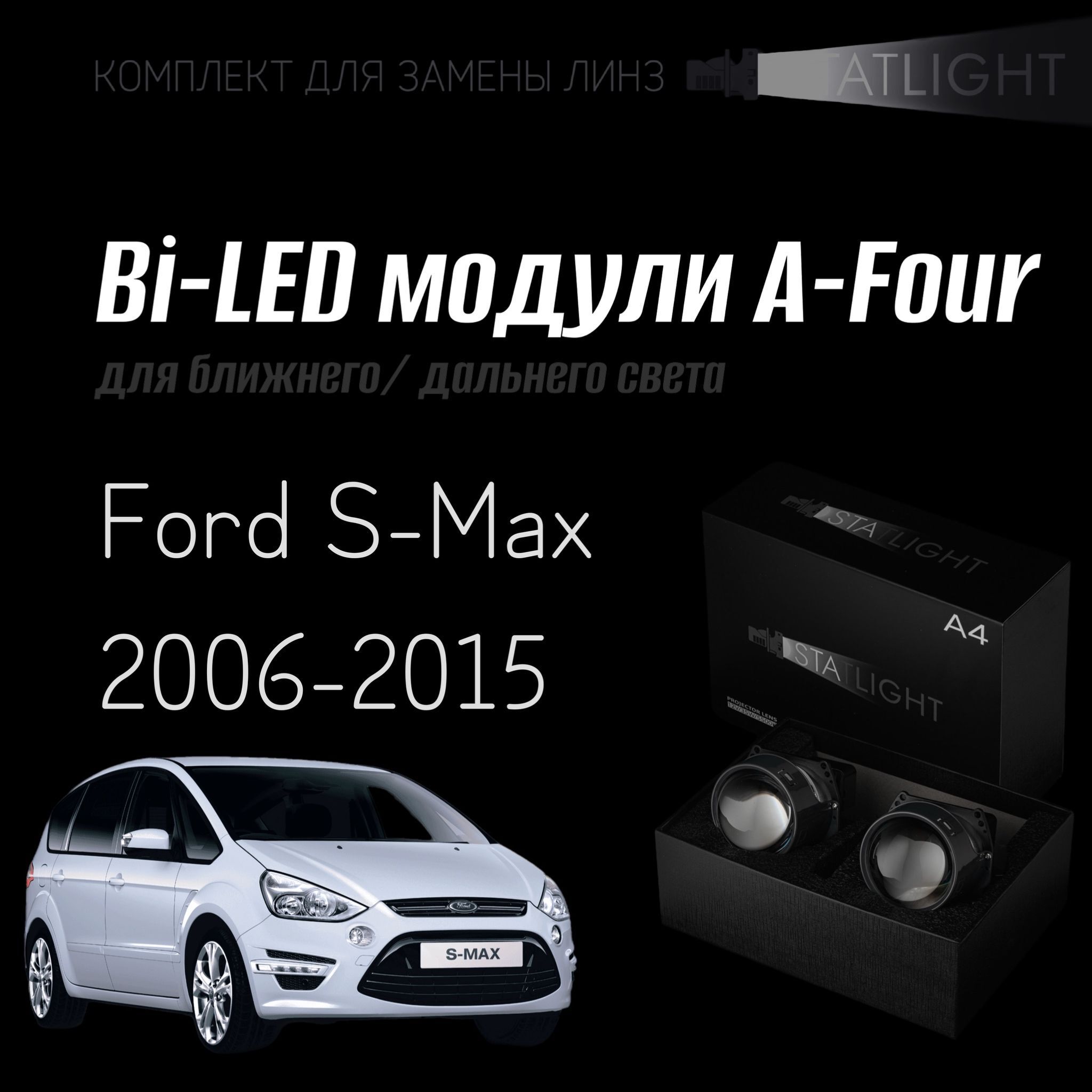 Bi led линзы 3.0 для фар на Ford S-Max 2006-2015, би лед линзы Statlight A-Four, комплект 2 шт
