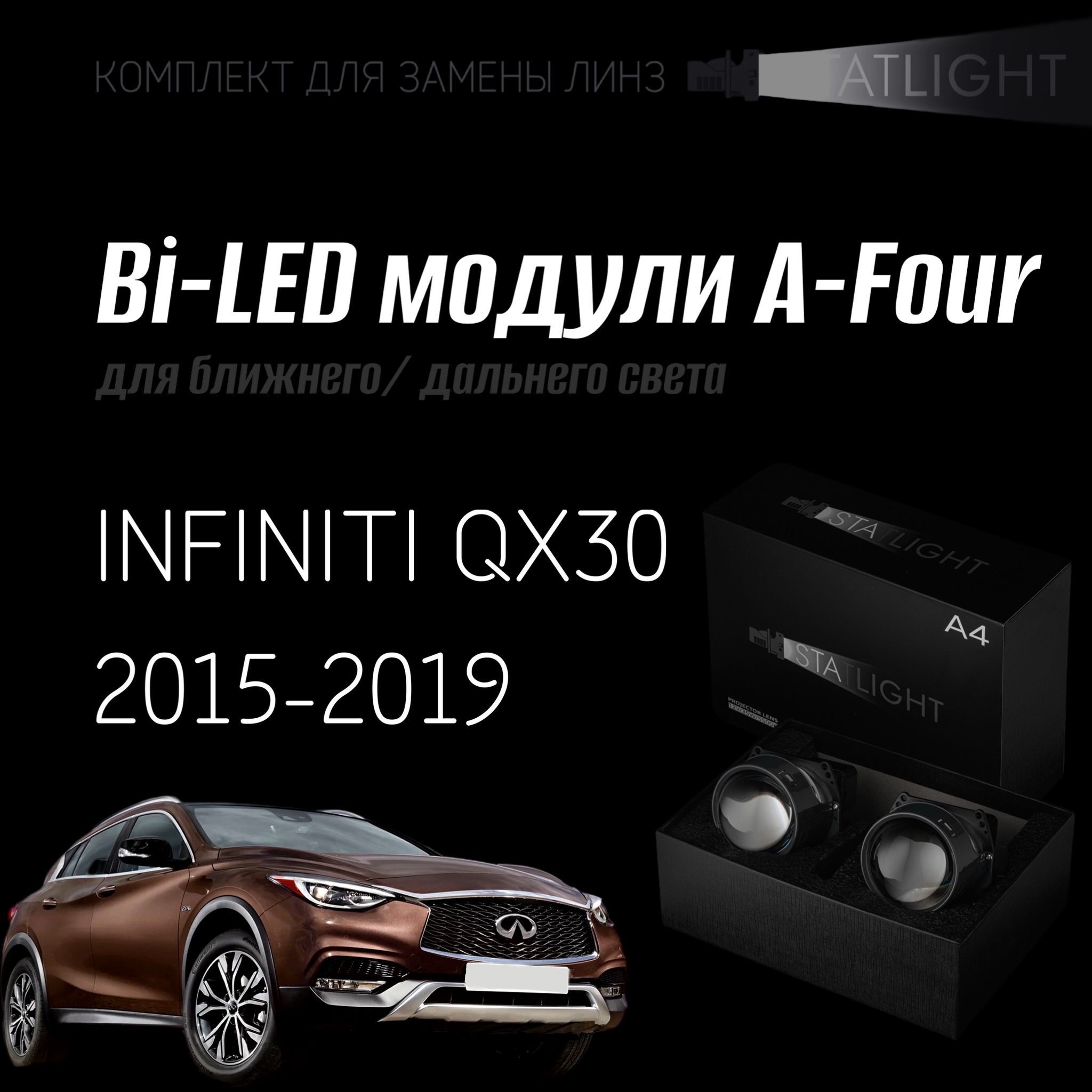 Bi led линзы 3.0 для фар на INFINITI QX30 2015-2019, би лед линзы Statlight A-Four, комплект 2 шт