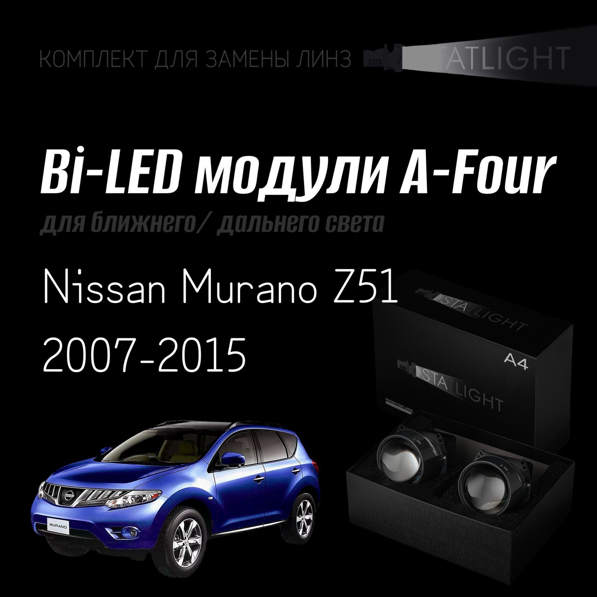 Bi led линзы 3.0 для фар на Nissan Murano Z51 2007-2015, би лед линзы Statlight A-Four, комплект 2 шт