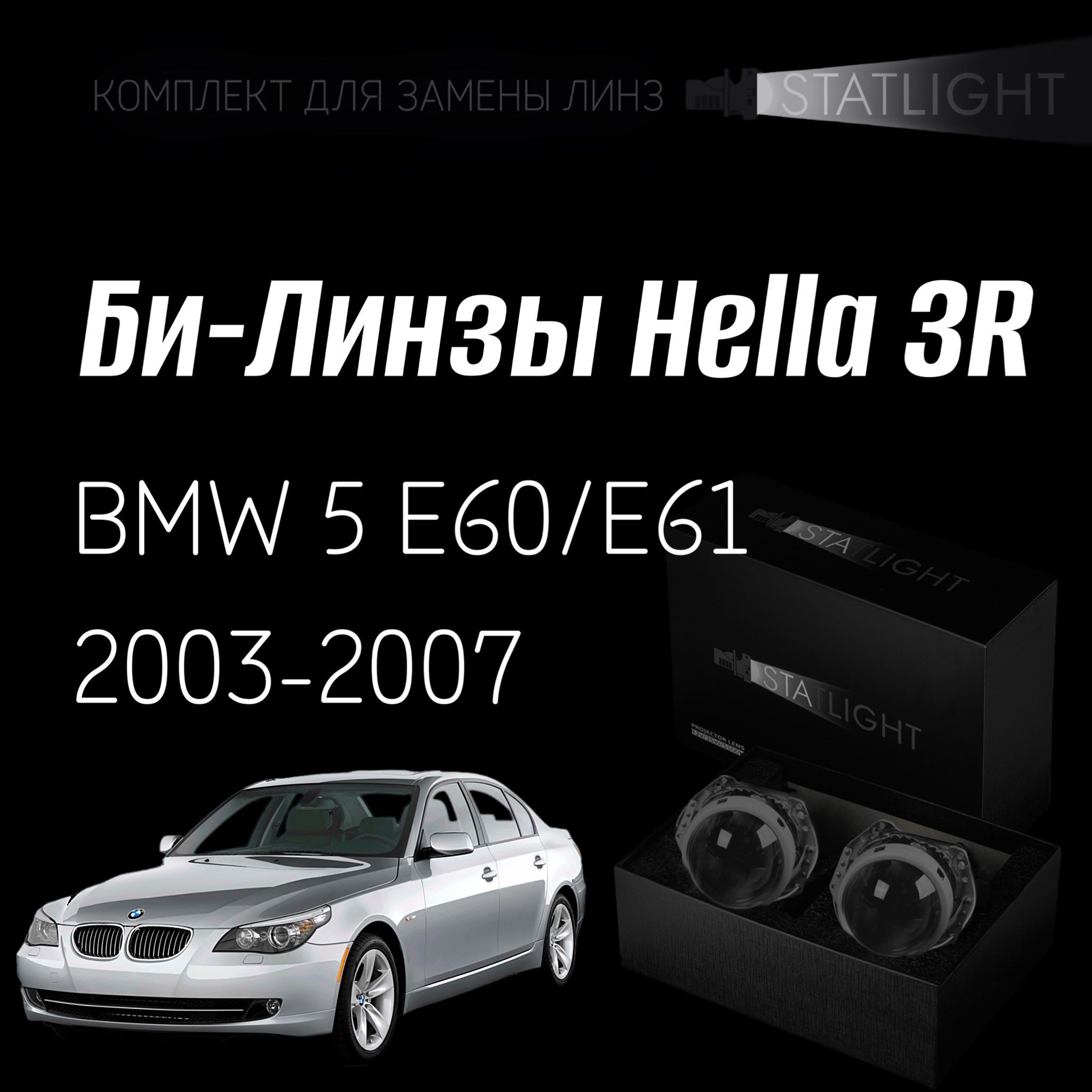 Би-линзы Hella 3R для фар на BMW 5 E60,E61 дорест. 2003-2007 AFS , комплект биксеноновых линз, 2 шт