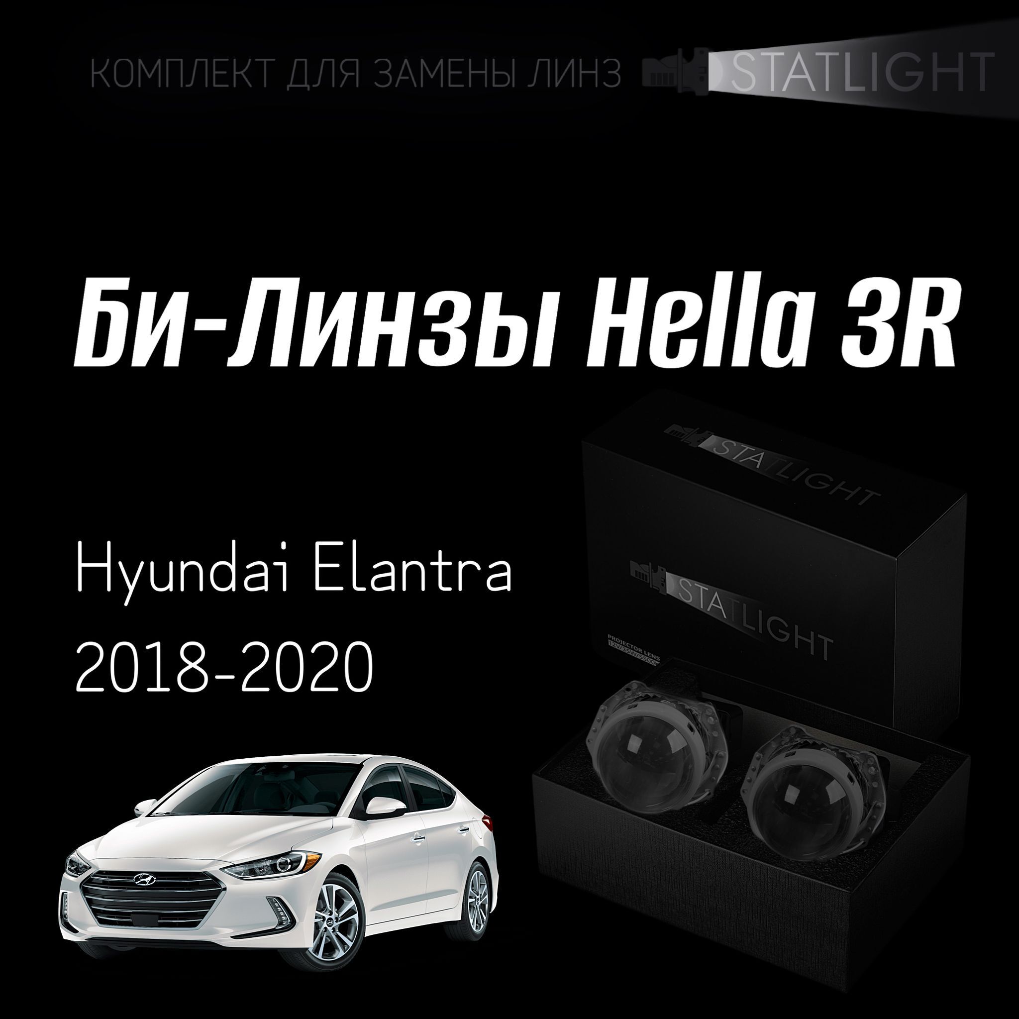 Би-линзы Hella 3R для фар на Hyundai Elantra 2018-2020, комплект биксеноновых линз, 2 шт