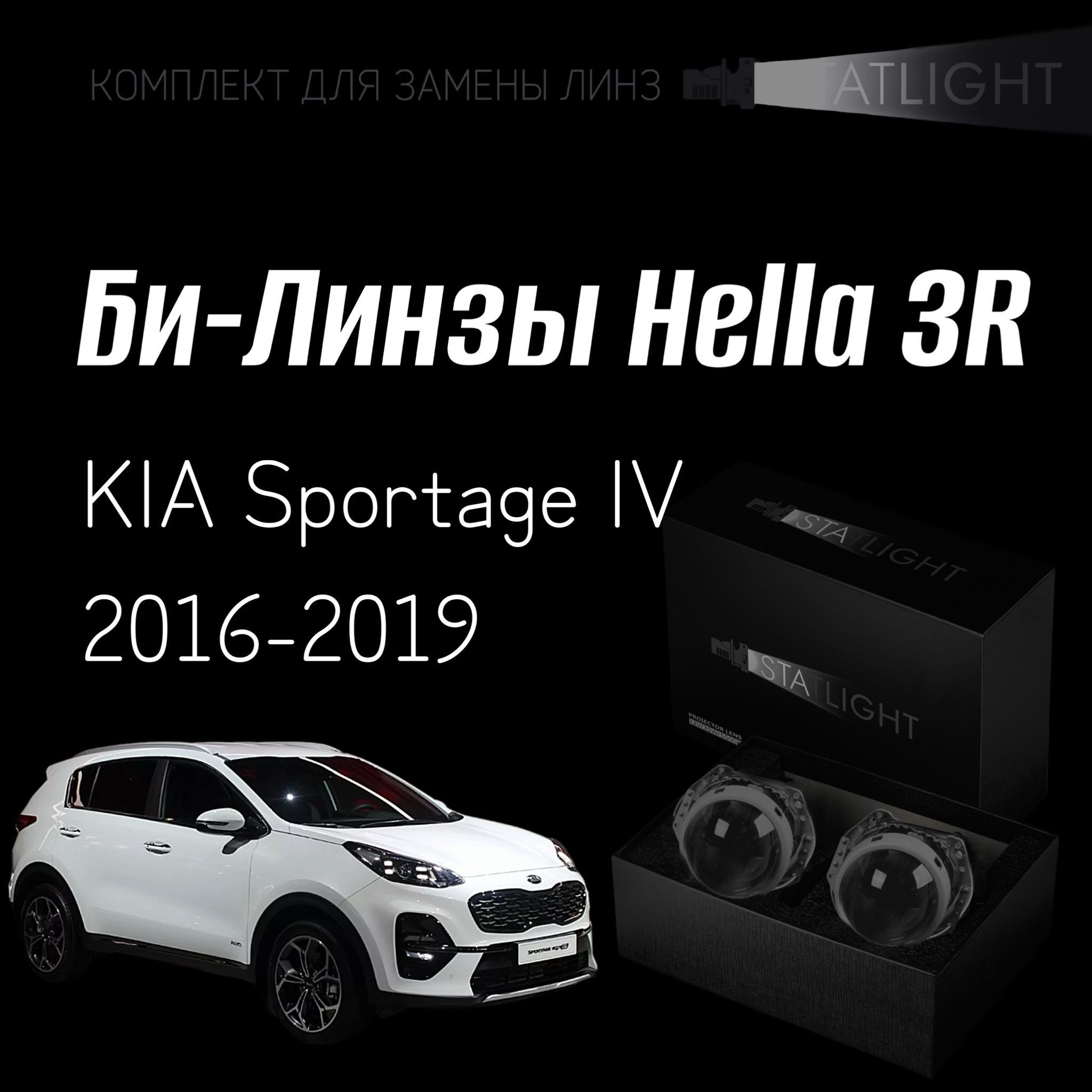 Би-линзы Hella 3R для фар на KIA Sportage IV 2016-2019, комплект биксеноновых линз, 2 шт