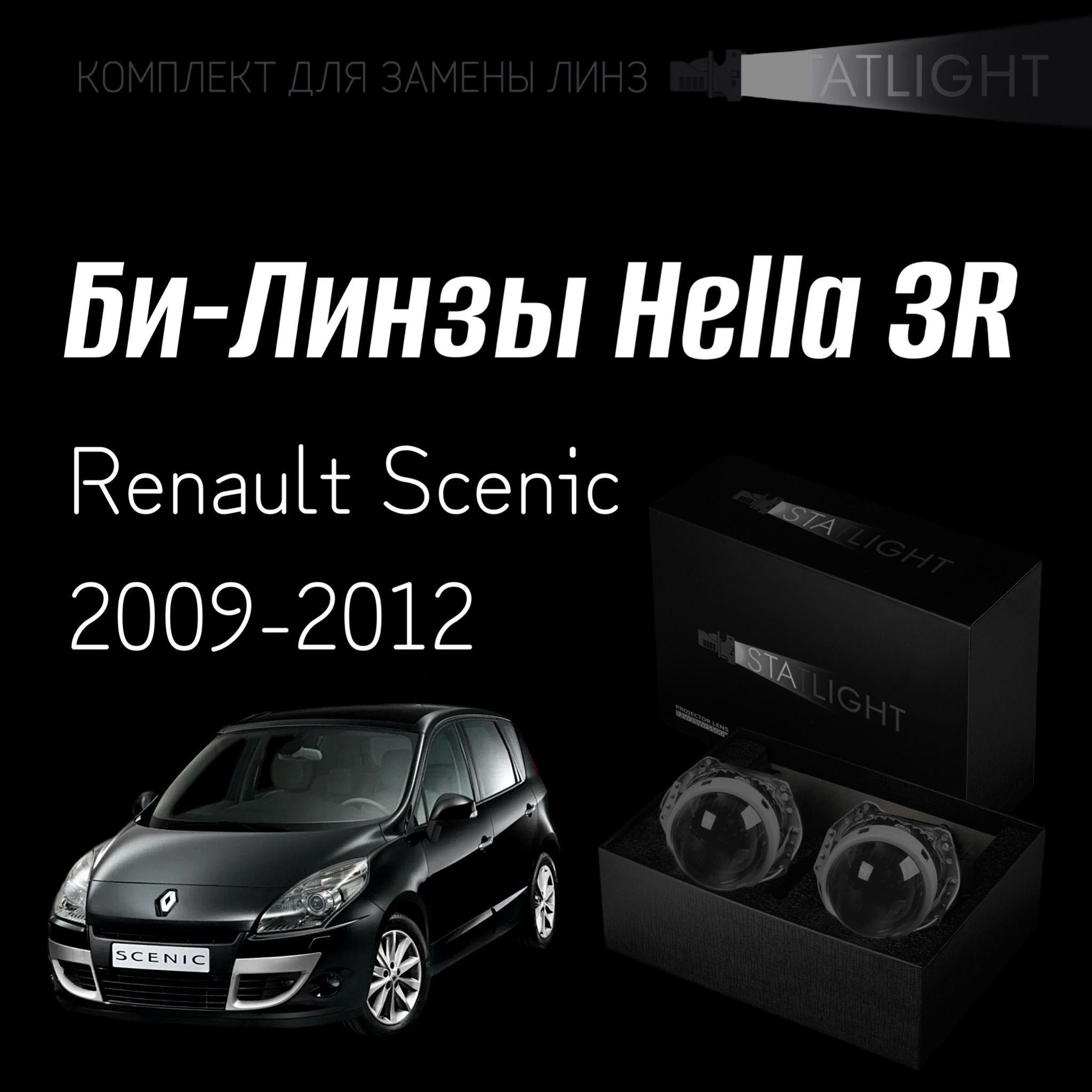 Би-линзы Hella 3R для фар на Renault Scenic 2009-2012 AFS , комплект биксеноновых линз, 2 шт