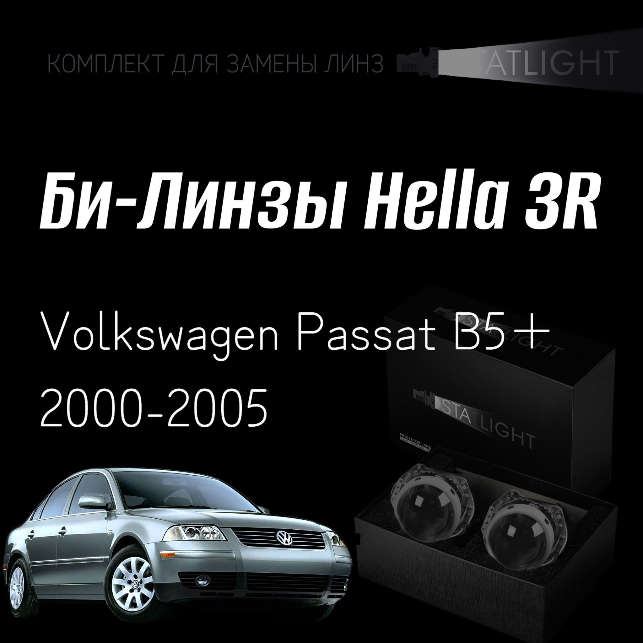 Би-линзы Hella 3R для фар на Volkswagen Passat B5+ 2000-2005, комплект биксеноновых линз, 2 шт