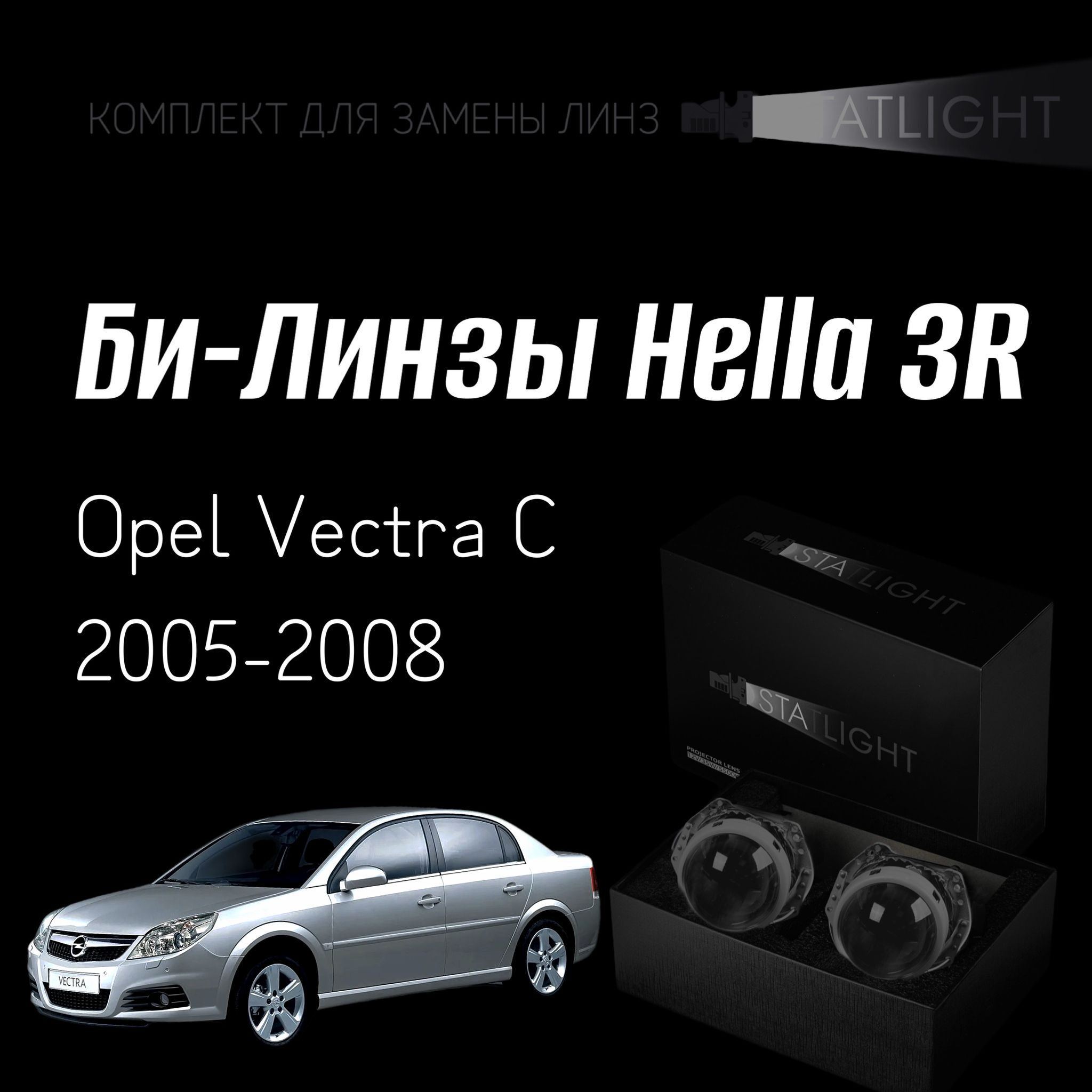 Би-линзы Hella 3R для фар Opel Vectra C 2005-2008, комплект биксеноновых линз, 2 шт